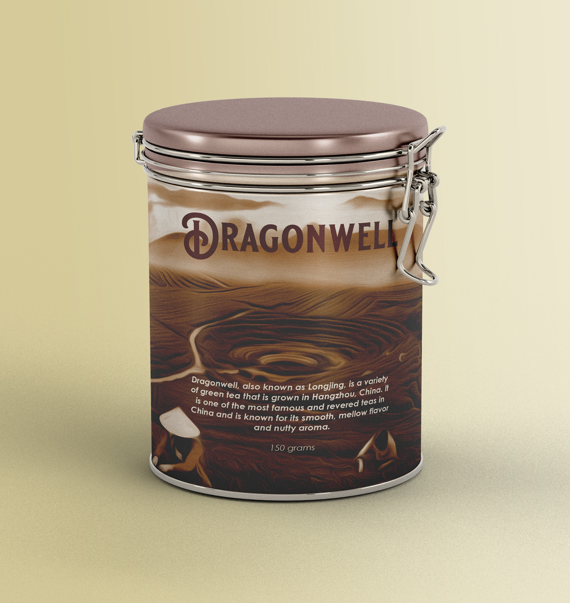 Each package has an oil painting of the landscape where the product is from, inspired by antiquity and world travel. Most products are named after specific places aside from the Dragonwell Tea, which is grown in the Hangzhou region of China.